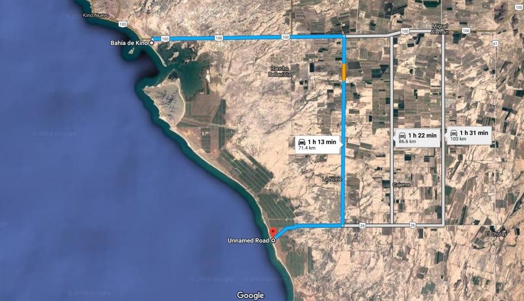 El terreno se encuentra a 100 km de HEMOSILLO, 130 km del PUERTO DE GUAYMAS y 350 km de NOGALES ARIZONA.
